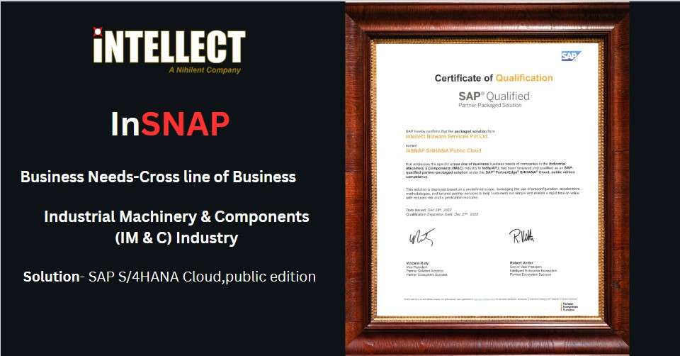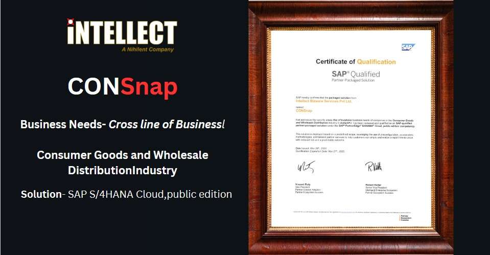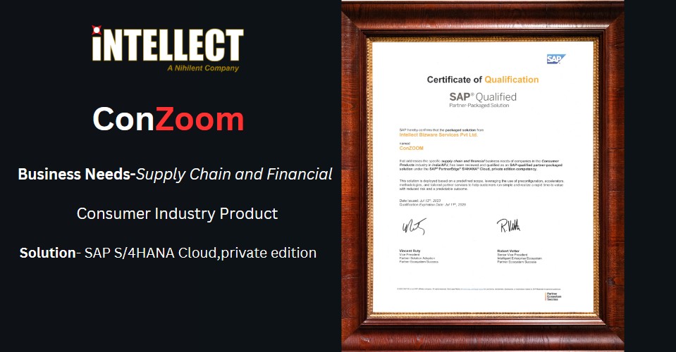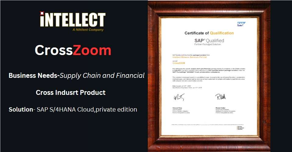 Home»SAP QPPS SAP Qualified Partner Package Solution SAP Qualified Partner Package Solution INTELLECT BIZWARE - Recognition as a partner who qualifies for multiple SAP-qualified partner packaged solutions under the SAP PartnerEdge S4HANA Public and Private Cloud offerings in 2024-25 CONZOOM CrossZOOM CONSnap InSNAP InZOOM