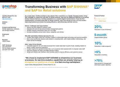 Adopting SAP solutions such as SAP S/4HANA Retail for merchandise management provides retail companies an end-to-end solution that supports processes across the entire retail value chain.